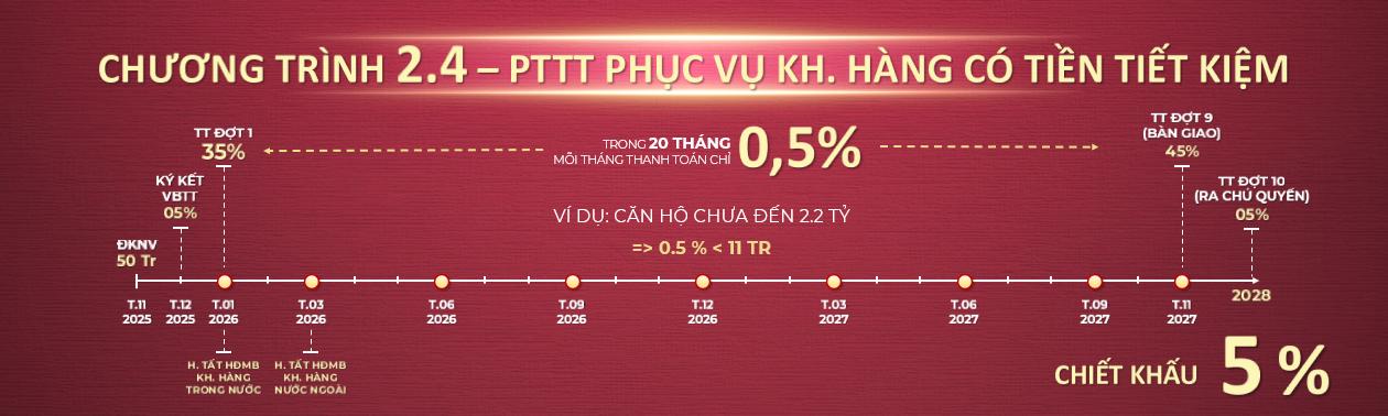 Tùy vào diện tích và loại hình căn hộ, mức giá sẽ được điều chỉnh phù hợp theo từng giai đoạn mở bán, đảm bảo đáp ứng đa dạng nhu cầu và khả năng tài chính của khách hàng.